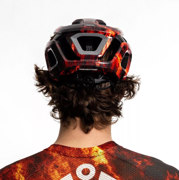 2025 Team CYTO TRIGON 設計以熔岩象徵全新人類誕生,烈焰流動間蘊藏著破繭而出的力量。熔岩不僅代表地殼深處的無盡能量,更象徵騎士們在極限挑戰中淬鍊而生,激發細胞所有潛能。