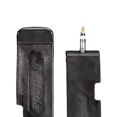 On the U-shaped end of the lever, there is an insertion point designed to remove Presta valve cores. Simply insert the valve core, twist the tire lever, and remove the valve core. With the valve core remover feature, extra tools for valve core removal are not necessary anymore. On one side of the handle, there is a hook which allows to fasten the lever to the spoke while it keeps the tire bead off the rim. This feature is very useful as it allows to keep the tire in place with one bead off. In this way, it is possible to work on other parts of the tire or add the sealant inside the tire without extra help.